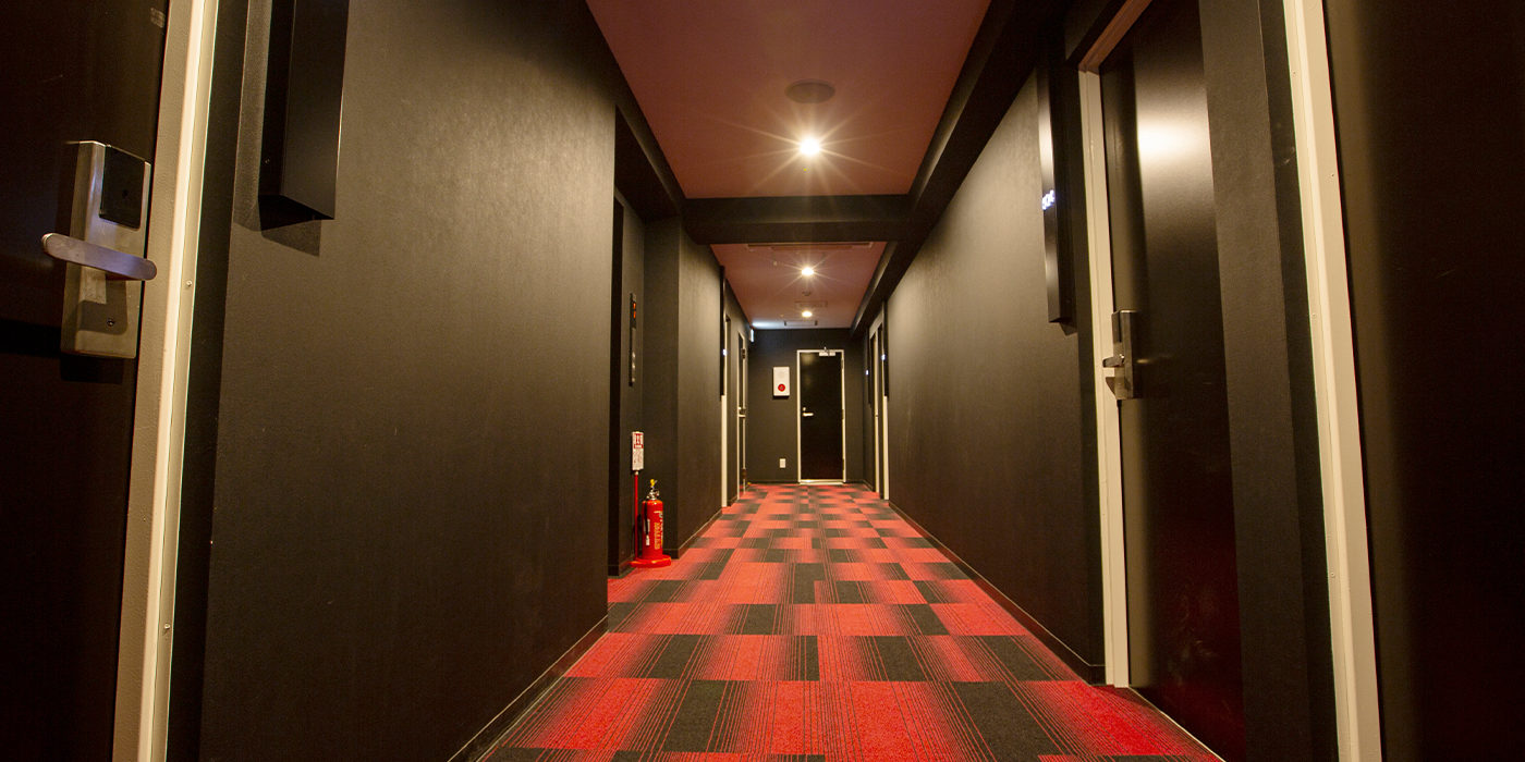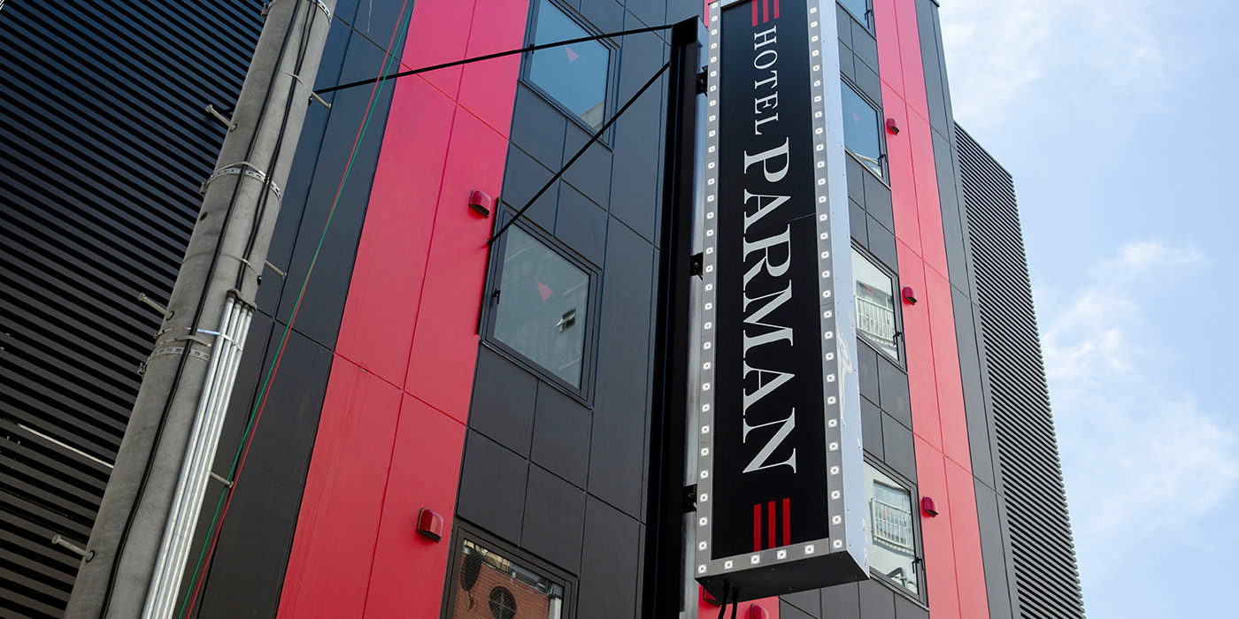 ホテルパーマンは赤と黒の外観がお洒落なデザイナーズホテルです。ご利用される方に、ワンランク上の上質さを感じていただけます。